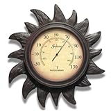 Sunny Day Thermometer Hand-Crafted Design This Thermometer adds beauty and function to any deck or patio! Offering Precise Quartz movement that's great for indoor or outdoor use. 10" Diameter x 1.5" D Rust Finish Large Easy to Read Numbers Great for Indoor and Outdoor Use In Stock-Ships Fast About Infinity Instruments One of the hottest trends today is to decorate and accessorize the outside of your living space. It extends your home and can increase the value. What better way to do this but with an indoor/outdoor clock or weather instrument from Infinity Instruments. On the deck, porch, or on the side of the house, these are great statement makers and are fully functional. With sizes ranging from 10 to 36 inches in diameter and finishes of metal, slate, wood, faux copper, tile and wicker all being water/weather proof Infinity has something for everyone, and the three year warranty can't be beat.
