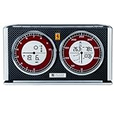 The MODENA Speedometer Style Weather Forecaster brings you the weather forecast via easy to read weather icons represented by exciting and fun Ferrari racing tires!Set the official time by synchronizing the clock and calendar to the official U.S. atomic clock via radio frequency broadcast. Includes air pressure display with built-in barometric sensor, indoor and outdoor temperature and humidity display, and comfort level indicator based on temperature and humidity. Crescendo alarm gradually gets louder and lasts 2 minutes. Snooze function provides an 8-minute delay between alarms. Alarm sound is selectable between exciting Ferrari racing engine sound or standard beep alarm HiGlo backlight is easy to read during low lighting conditionsRequires: 3 x AA batteries.