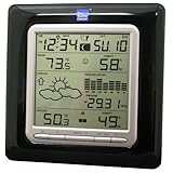 Our consumer electronics products include radio-controlled clocks and watches, wireless weather stations power monitors and other measuring devices. We introduced radio-controlled clocks to the US market in 1991 and continue to be on the cutting edge of this technology in America. Our weather instruments clocks and watches are calibrated daily to the atomic time standard of the National Institute of Standards and Technology. . Weather forecasting functions with 3 weather icons and weather tendency indicator. Records MIN/MAX temperature with time and date of recording. Records MIN/MAX humidity. Barometric tendency arrow. Barometric pressure with 24 hour history graph (in inHg or hPa). Indoor comfort level icon. 12 Moon phases. Atomic time and date with manual setting. Automatically updates for Daylight Saving Time (on/off option). 12/24 hour time display. Perpetual calendar. Time zone setting. US time zone map. Time alarm with snooze. Low battery indicator on receiver. Fold out stand included. Wall hanging or free standing. Can receive up to 3 sensors. Transmission Range: 300 Ft. LCD Contrast Setting 0 to 7 levels. Battery Life: 24 Months. Swiss Sensor. IN Temp Range: 14.2F to 139.8F (-9.9C to +59.9C). Indoor/Outdoor relative humidity: 1%-99% RH. OUT Temp Range: -39.8F to +139.8F (-39.9C to +59.9C). Weather Display: 2 C Alkaline Batteries. Thermo-hygro transmitter: 2 AA Alkaline Batteries. Color: Black. Receiver Dimensions: 7.5 x 7.6 x 1.3. Sensor Dimensions: 1.5 x 5.05 x .83.